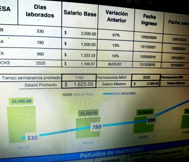 Comparamos sus trabajos, los salarios que devengaba y el tiempo que se mantuvo en ellos para saber si hay patrones de estabilidad o estancamiento profesional