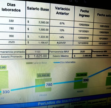 Cual es su historial laboral, como son evaluados por sus empleadores anteriores? Si su carrera es ascendente o esta estancada; si es estable en sus trabajos o tiene rotación; Los motivos de salida y posibles conflictos o recomendaciones