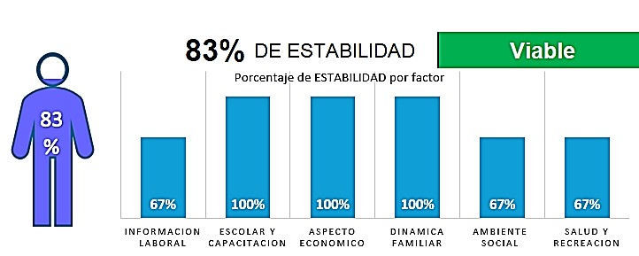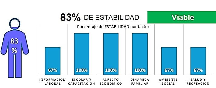 ASPECTO ECONÓMICO revisamos el contraste entre ingreso y egresos, así como los bienes que posee la persona y sus hábitos de ahorro y deuda; determinando un índice absoluto de equilibrio financiero, a lo largo de los años hemos definido distintos porcentajes para declarar si el resultado es indicador de estabilidad o riesgo.