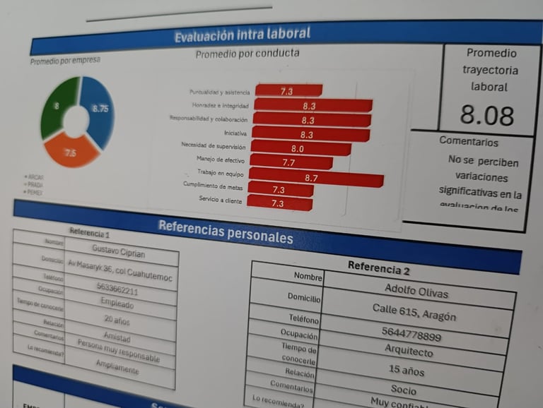 Cubrimos las 3 últimas referencias de tipo laboral en nuestro formato estándar, pero podemos flexibilizar según sus necesidades reales. Nuestro estudio contiene indicadores patentados únicos que demuestran la estabilidad laboral, el equilibrio económico saludable y un índice de viabilidad y estabilidad general